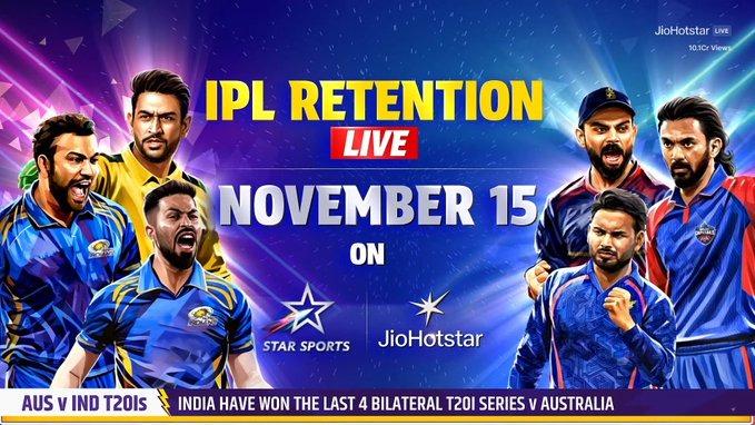 The excitement for the Indian Premier League (IPL) 2026 season is about to escalate. JioStar, the official broadcasters of the league, made it clear that all IPL franchises will announce their lists of retained and released players on November 15. This eagerly awaited date for the IPL retentions was confirmed just moments after India secured a T20I series victory against Australia, following the washout of the fifth match in Brisbane.