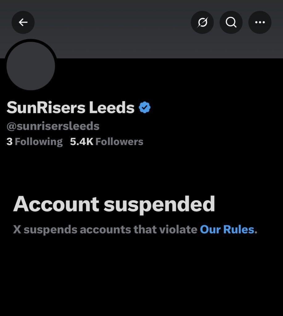 Only a few hours after Abrar was signed, the official X (formerly Twitter) account of Sunrisers Leeds was suspended. The platform did not explain the reason, but anyone trying to visit the page now sees a message saying the account has been suspended for violating X’s rules.