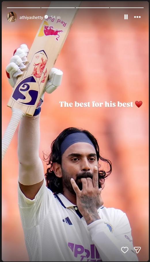 Bollywood actor and KL Rahul's wife, Athiya Shetty, took to her Instagram to share a picture of his husband's unique celebration after smashing a century against the West Indies in the 1st Test match. Here is the picture.